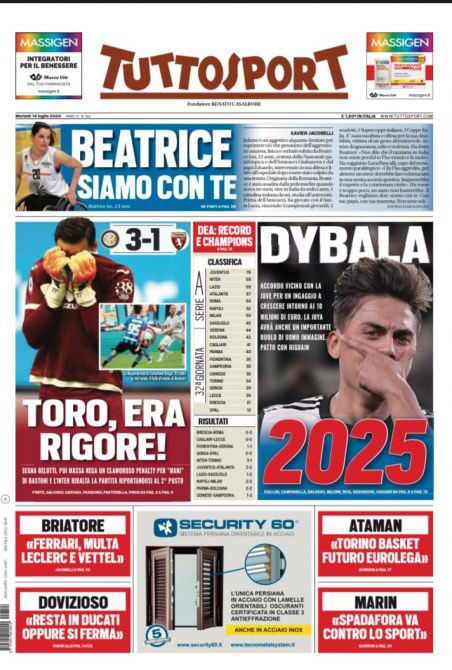 Sport täcker förstasidan med beskedet ”Umtiti på väg ut”. Barcelona är enligt tidningen helt inställd på att värva en ny mittback denna sommar. Umtiti kan lånas ut, i Italien är Napoli, Lazio Roma och Torino intresserade, enligt Sport. Vidare uppger tidningen att förhandlingarna med Inter om anfallaren Lautaro Martínez återupptas i augusti.